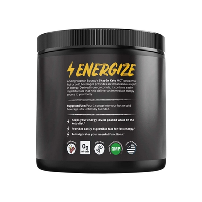 Stay In Keto – MCT Oil Powder là thực phẩm bổ sung cao cấp được nghiên cứu và phát triển bởi Vitamin Bounty – thương hiệu thực phẩm chức năng uy tín tại Mỹ. Sản phẩm được bào chế dưới dạng bột mịn, chiết xuất từ nguồn dừa hữu cơ tinh khiết thông qua công nghệ phân đoạn (Fractionated).